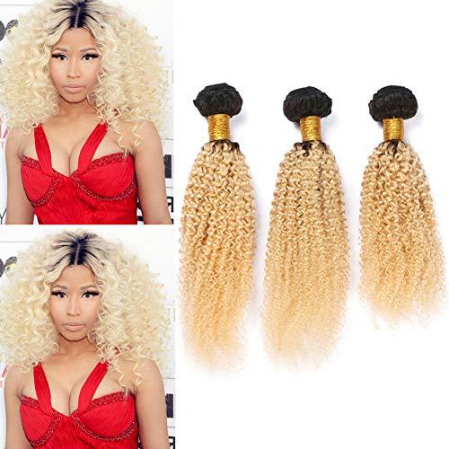 - 2) Hair Color:#1B/613 Ombre Kinky Curly 3 Bundles,Blonde Ombre Black Roots,2 Tone Ombre