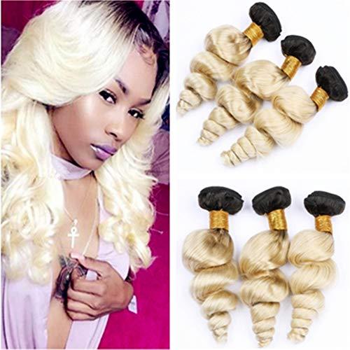- 2) Hair Color:#1B/613 Blonde Ombre Loose Wave Human Hair 3 Bundles,Bleach Blonde Ombre,Black to Blonde 2Tone Ombre