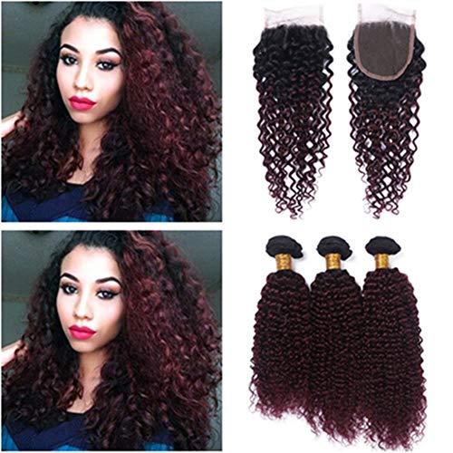 - 3) Hair Texture:Kinky Curly Wine Red Ombre Human Hair 3 Bundles and Closure