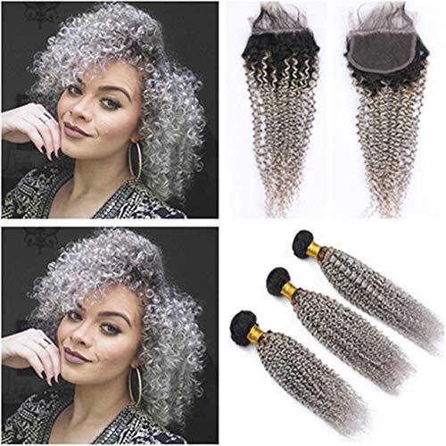 - 3) Hair Texture:Kinky Curly Ombre Grey Human Hair Weaves,Black to Grey Ombre Curly 3Bundles with Closure