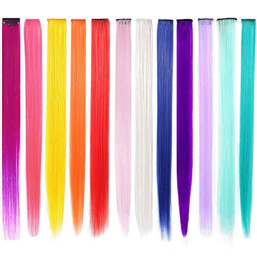 Hair Clip Extensions\nWigs Accessories\nHairpieces\nColored Party Highlights Straight Hair Clip Extensions\nColored Clip in Hair Extensions\nThey are good quality, they hold up well,and they cut well too!\nAs a Christmas present, She could play around with the cool colors and she can simply remove them whenever! Get the variety of different colors and they were beautiful.Could trying all the different colors on.\nThese extensions aren\'t as thin as others sold.\nThe colors are fun.\nAnd look like real hair!\nSuper easy to clip in and they stay all day long.\nIf you has pretty long hair - you didn\'t need to cut any of the pieces.\nThe hair feels just like your hair can\'t tell the difference,so these are just the perfect length for you.\nDefinetly recommend this if you are looking for fun colors but do not want to damage your natural hair.\nHair extensions were soft and long enough to cut to blend in your hair Style.\nWill be Great for your costume.\nThey are super easy to use, even with your fine hair,They are so fun. you can put three into your hair ,Maybe it was the perfect amount of color for you.\nWore these to a 90s party they stay in strong and don\'t slide out.\nWore it for a halloween party Get lots of compliments people thought you actually dyed hair.