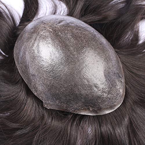 "Injection Base" Custom Customized Men Human Hair System Replacement Toupee Hairpiece Installation Wig Prosthesis for Hair Loss Alopecia(#210 Brown Color with 10% White Grey Gray Hair)