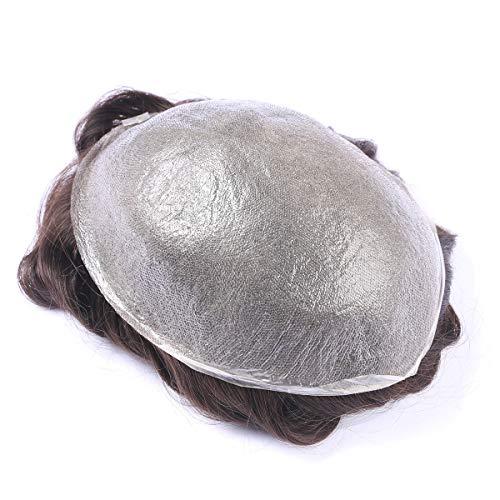 "NG Base"0.02-0.04mm Skin Thickness Men Human Hair System Replacement Toupee Hairpiece Installation Wig Prosthesis for Hair Loss Alopecia(#1B20 Natural Black Brown Color with 20% White Grey Gray Hair)